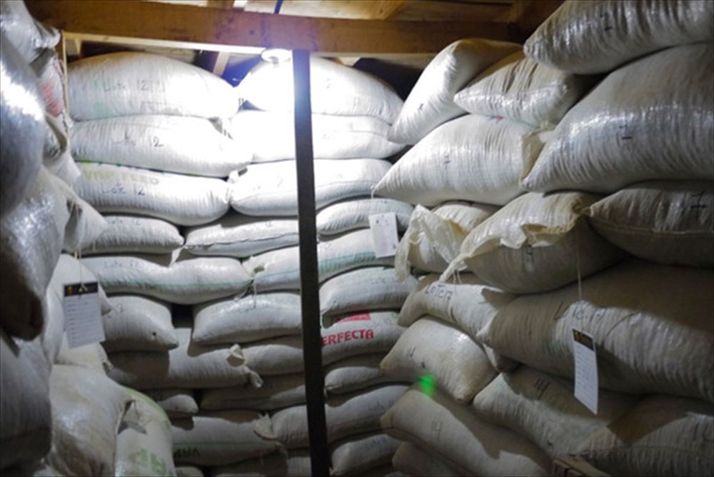 それぞれの農園で収穫され、生産処理されたコーヒー(ペルガミーノ)は倉庫でロット毎にきちんと管理され、出荷の時を待ちま